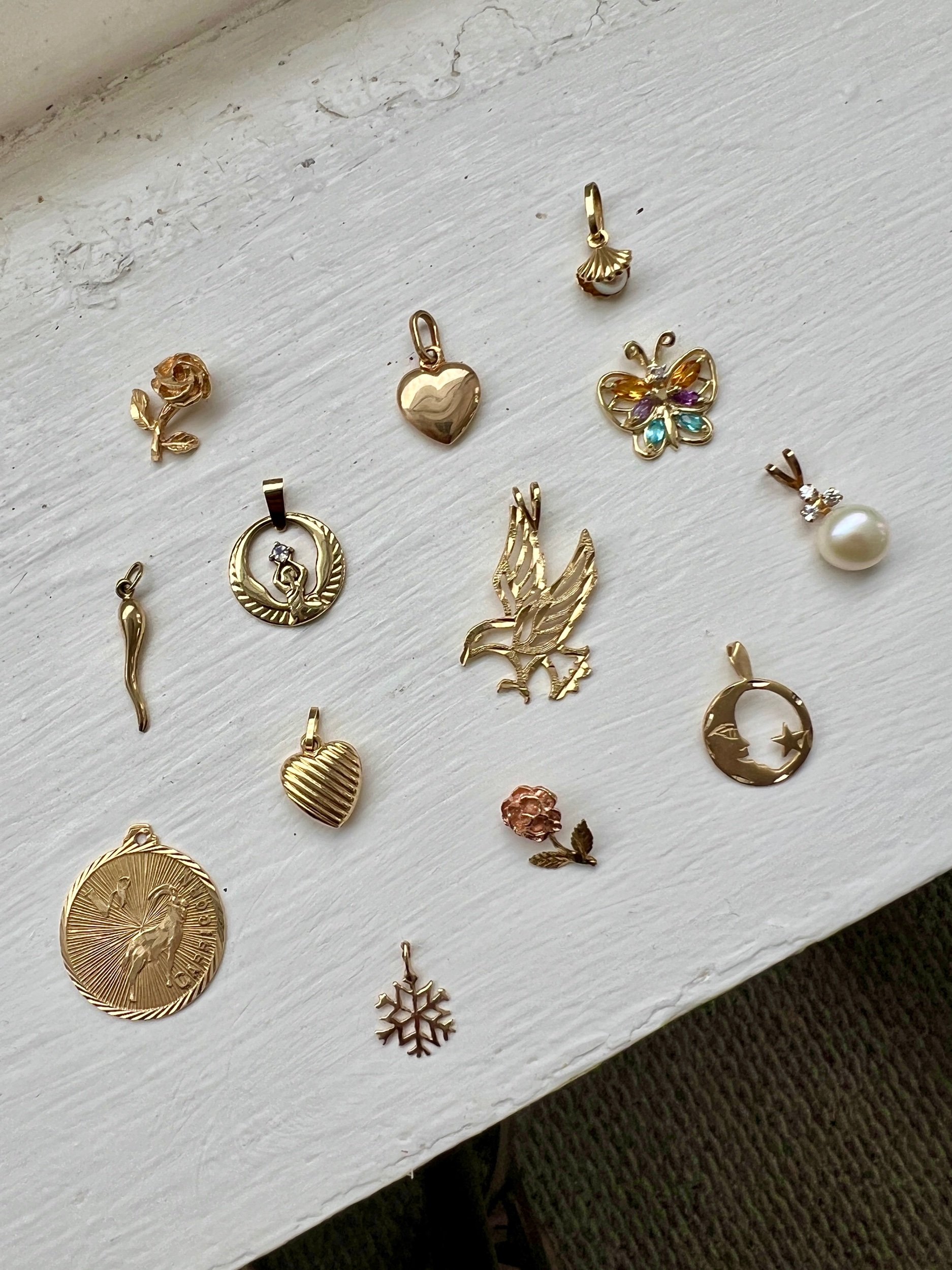 Shop › Vintage 14K Yellow Gold Snowflake Charm Image 1 of 2 Image 2 of 2 Vintage 14K Yellow Gold Snowflake Charm $100.00 Add To Cart Added! You Might Also Like Vintage 14k Yellow & Rose Gold Rose Pendant $150.00 Vintage 14K Gold Lion Pendant Charm $111.00 Sold Out Vintage 14kt Yellow Gold Butterfly Charm Holder Pendant $115.00 14K Gold Coffee Cup Charm $375.00 Vintage 10K Cultured Pearl & Diamond Pendant $120.00